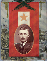 There was also a gold wound chevron that was to be worn on the lower right sleeve, and perhaps this is the reason that Edwin’s exposure to mustard gas at Belleau Wood is listed on his war service chevron papers. This is the only document I have seen that mentions it. His discharge papers say that he didn’t receive any wounds in service, but this didn't prevent him from receiving the Purple Heart for the gas exposure several decades later. The notation about the gas on the war service chevron paper may have been enough authorization to wear the wound chevron. But in any case, he didn’t take advantage of the opportunity to wear these chevrons. The chevrons on the upper left sleeve of his uniform are his sergeant’s stripes. There was also a red discharge chevron that was to be worn midway between the elbow and shoulder of the left sleeve, pointing upward. Former soldiers were allowed to wear their uniforms freely for three months after discharge, but after this period they could be charged with impersonating a soldier if they wore the uniform in public without having the discharge chevron sewn to the sleeve (US Militaria Forum). The discharge chevron has also not been attached to Edwin’s uniform, so we can assume that he didn’t want to wear it in public. |